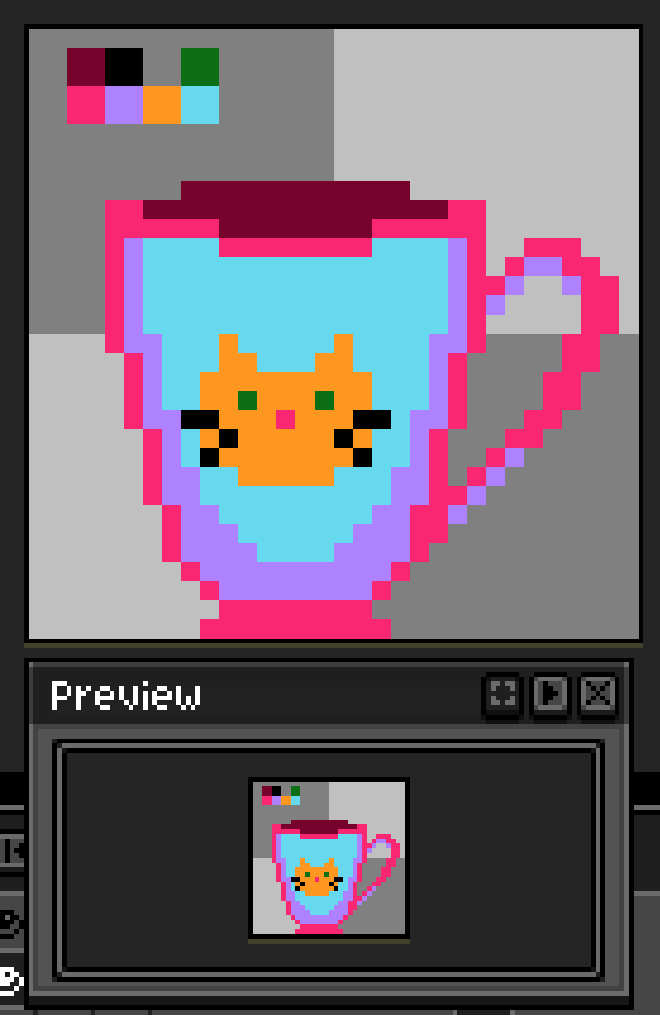 This time I used one of Pedro Medeiros’ Pixel Art Articles, namely 1 - An Absolute Beginner’s Guide. The first exercise (aside from getting Aseprite running) was to draw a mug, a sword, a skull & a human face before the basics were explained.