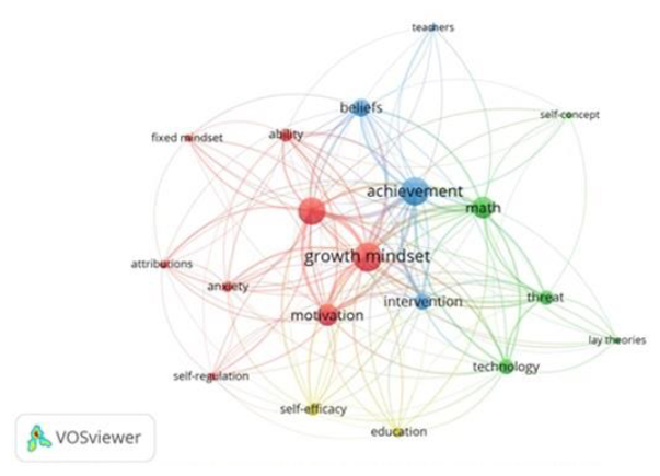 A growth mindset is the belief that one’s intellect and abilities may develop through effort. This mindset suggests that intelligence is not fixed but adaptable. With the continuous growth in literature on the growth mindset in mathematics, there is a need to investigate the current trends from a bibliometric perspective. To meet this need, the leading countries, source citations, author co-citations, and word co-occurrences were examined. A total of 317 articles were retrieved from the Scopus and Web of Science (WoS) databases spanning 2014â2023. The VOSviewer software was used to analyze the collected data. The United States was the leading contributor to growth mindset research, Frontiers in Psychology emerged as the major source of citations, with Dweck being the most cited author. The word cooccurrence map was grouped into different clusters. The Scopus database shows how belief systems shape mindsets and how motivation intersects with clinical and longitudinal investigations. WoS emphasizes the importance of interventions that narrow belief-achievement gaps, as well as the role of technology. These findings offer valuable insights into the expanding body of research on growth mindset in mathematics, paving the way for further research to explore interventions, cultural influences, and long-term effects on student outcomes.